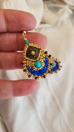 De la broderie toujours, mais de la broderie réalisée avec des toutes petites perles rocailles de Lunéville très anciennes ( 1900 ), pour un résultat tout en finesse.