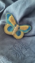 Cette broche est entièrement brodée au fil de soie et au fil d'or selon une technique traditionnelle et éternelle.