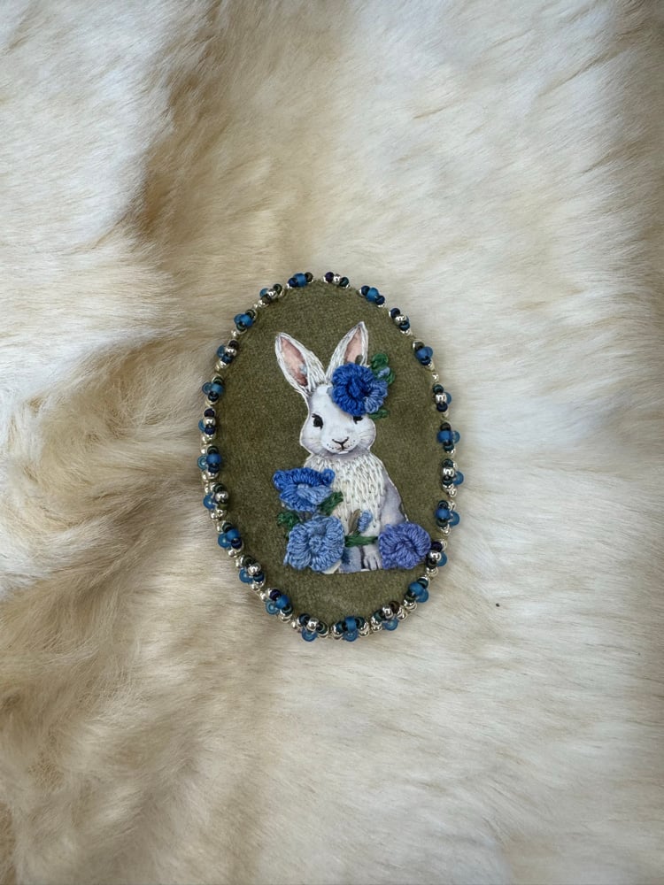 Un petit lapin délicatement brodé, comme une apparition printanière.