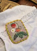 Broche brodée sur du lin brut très ancien.